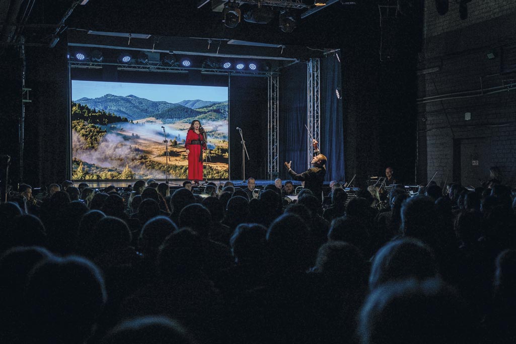 Concert de l’Opéra de Kharkiv, au sous-sol du bâtiment. L’orchestre joue à quelques centimètres du premier rang, seuls les chanteurs sont sur la scène. Il y a 400 places, toutes occupées. Le 26 septembre 2025. © Cerise Sudry Le Dî