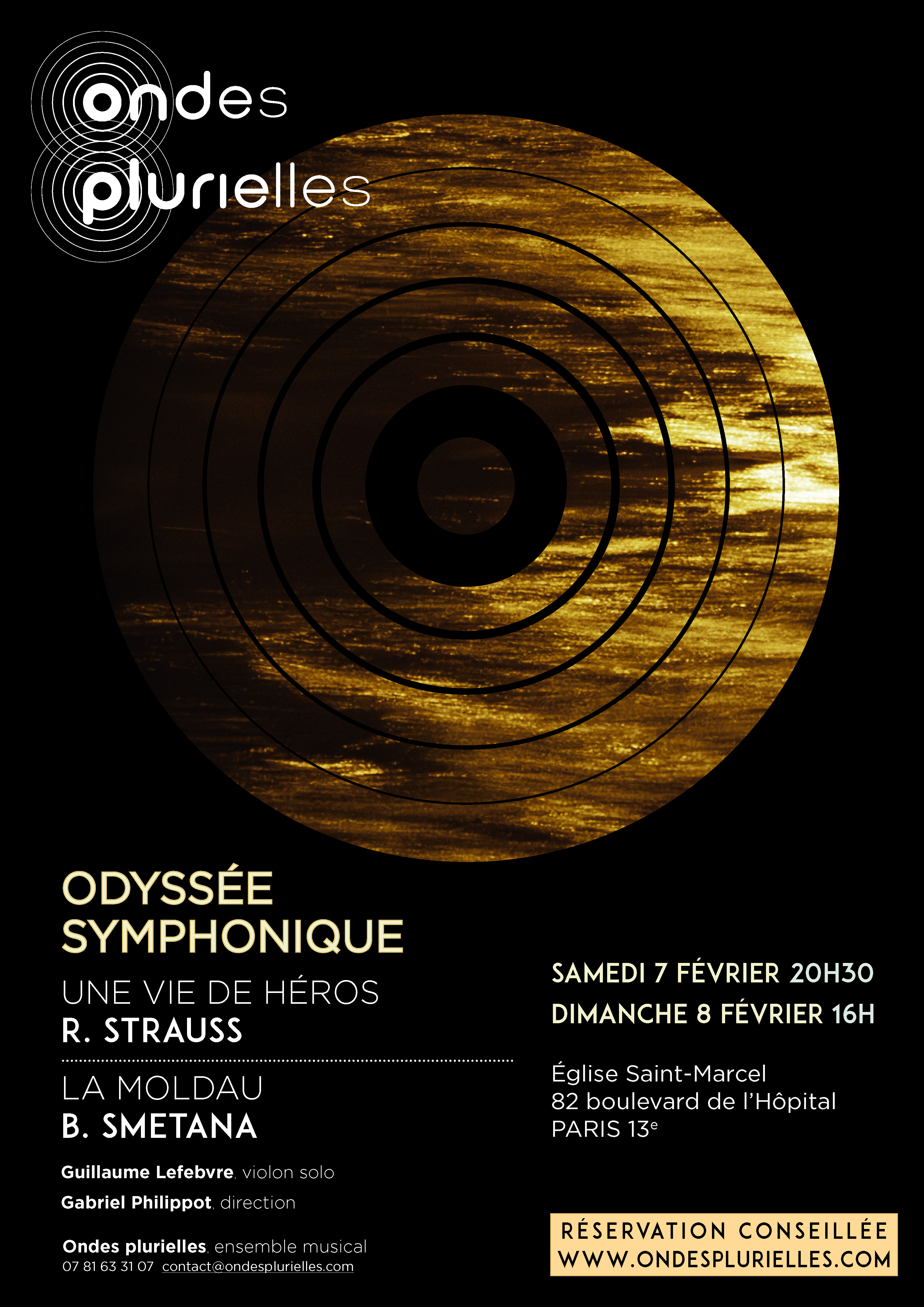 AU PROGRAMME « Une vie de Héros » de Richard Strauss « La Moldau » de Bedrich Smetana ARTISTES Guillaume Lefebvre, violon solo Gabriel Philippot, direction Ondes plurielles, ensemble musical INFOS PRATIQUES Samedi 7 février 20h30 Église Saint-Marcel 82 boulevard de l’Hôpital, 75013 Paris INFOS BILLETTERIES Entrée en libre participation Réservation conseillée Billetterie en ligne Hello Asso : montant libre